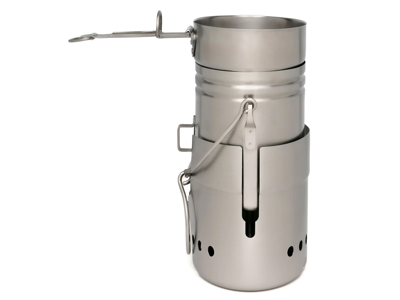Materiaal en Constructie De set is volledig gemaakt van roestvrij staal, een materiaal gekozen voor zijn duurzaamheid en weerstand tegen roest en slijtage. Roestvrij staal is ideaal voor kookgerei omdat het niet reageert met voedsel en gemakkelijk schoon te maken is, zelfs in minder ideale omstandigheden. De componenten van de set zijn ontworpen om compact in elkaar te passen, wat essentieel is voor het minimaliseren van ruimte tijdens het reizen.